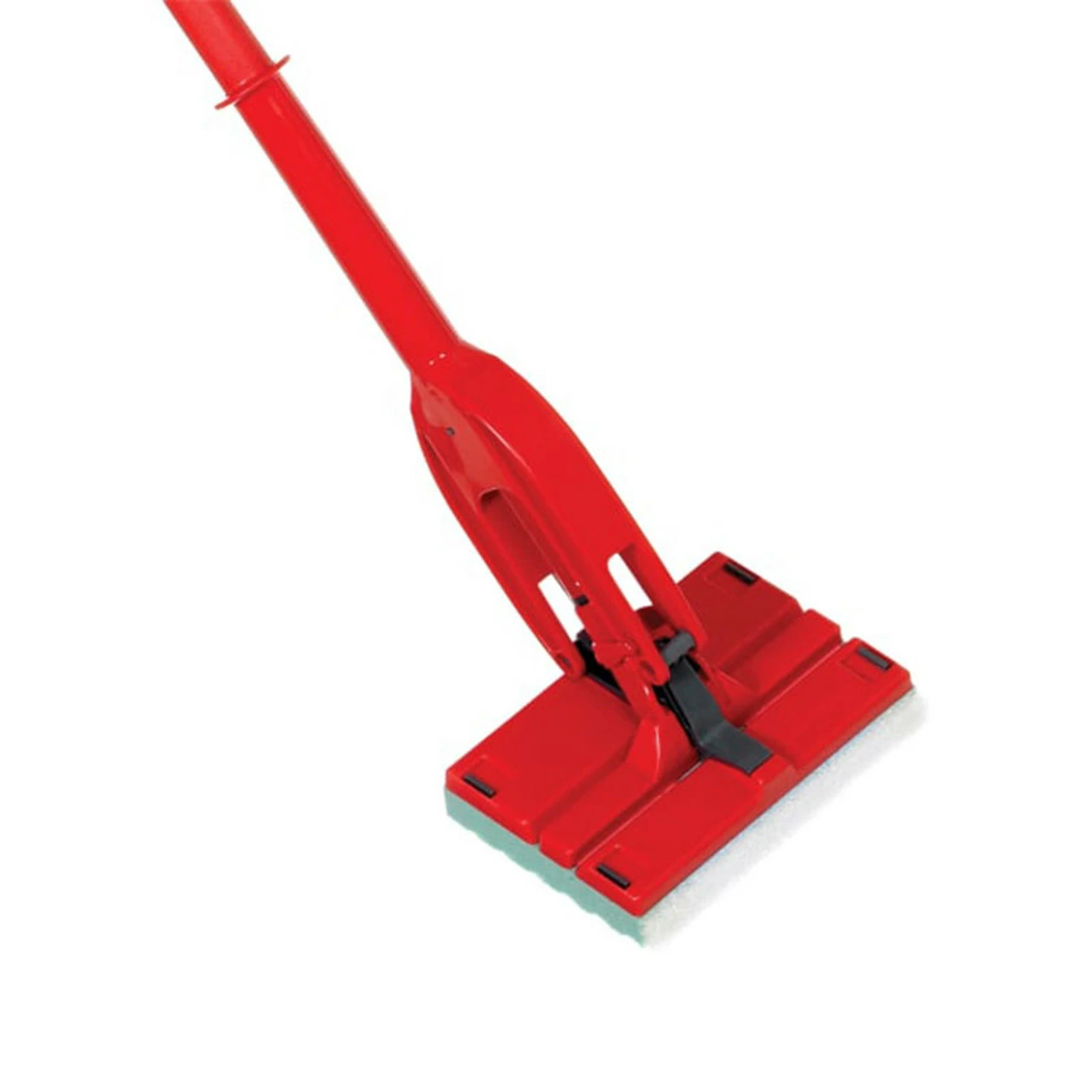 The Vileda Magic Mop Flat Sponge Mop has a push-pull wringing system that means no need for a bucket with a wringer. The double hinge allows more water to be squeezed out meaning floors dry faster. It has an absorbent sponge with grooves for efficient cleaning. It includes a non-scratch scourer for removing stubborn marks. Easy to replace refill.